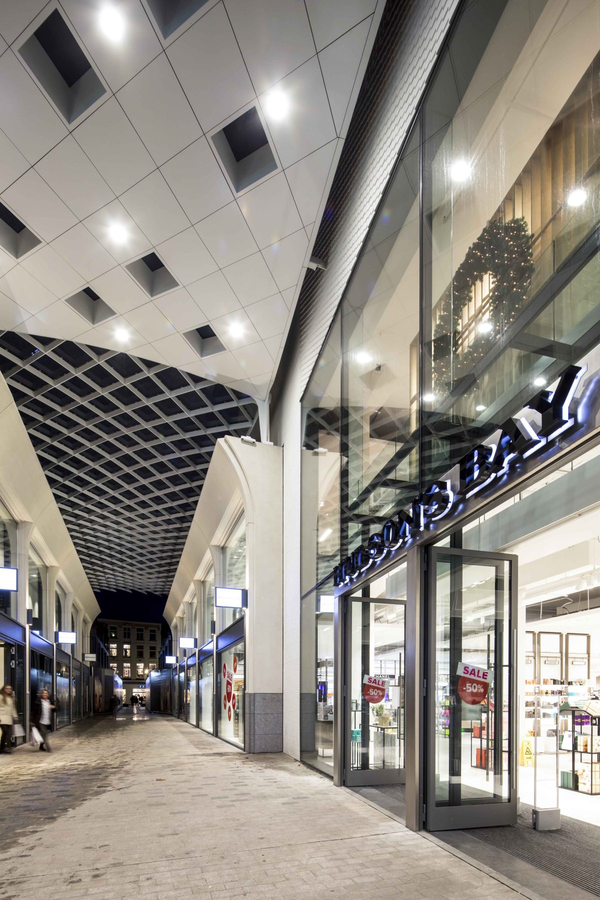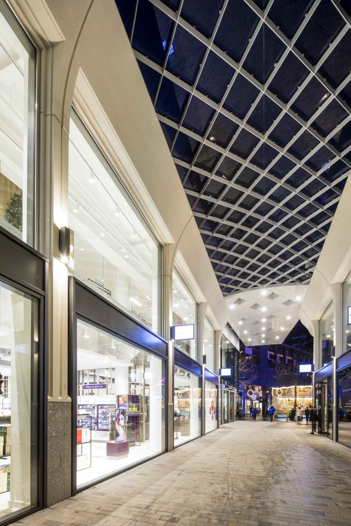 Het pand kreeg een moderne gevel met veel ramen, zodat het winkelend publiek uitzicht heeft op het Pieter Vreedeplein en de Heuvelstraat. Naast de Hudson’s Bay bouwde de combinatie een overdekte passage die Pieter Vreedeplein en Heuvelstraat met elkaar verbond. In een later stadium werd deze passage doorgetrokken tot aan de Emmapassage, waardoor een gevarieerd winkelaanbod met logische looproutes ontstond.